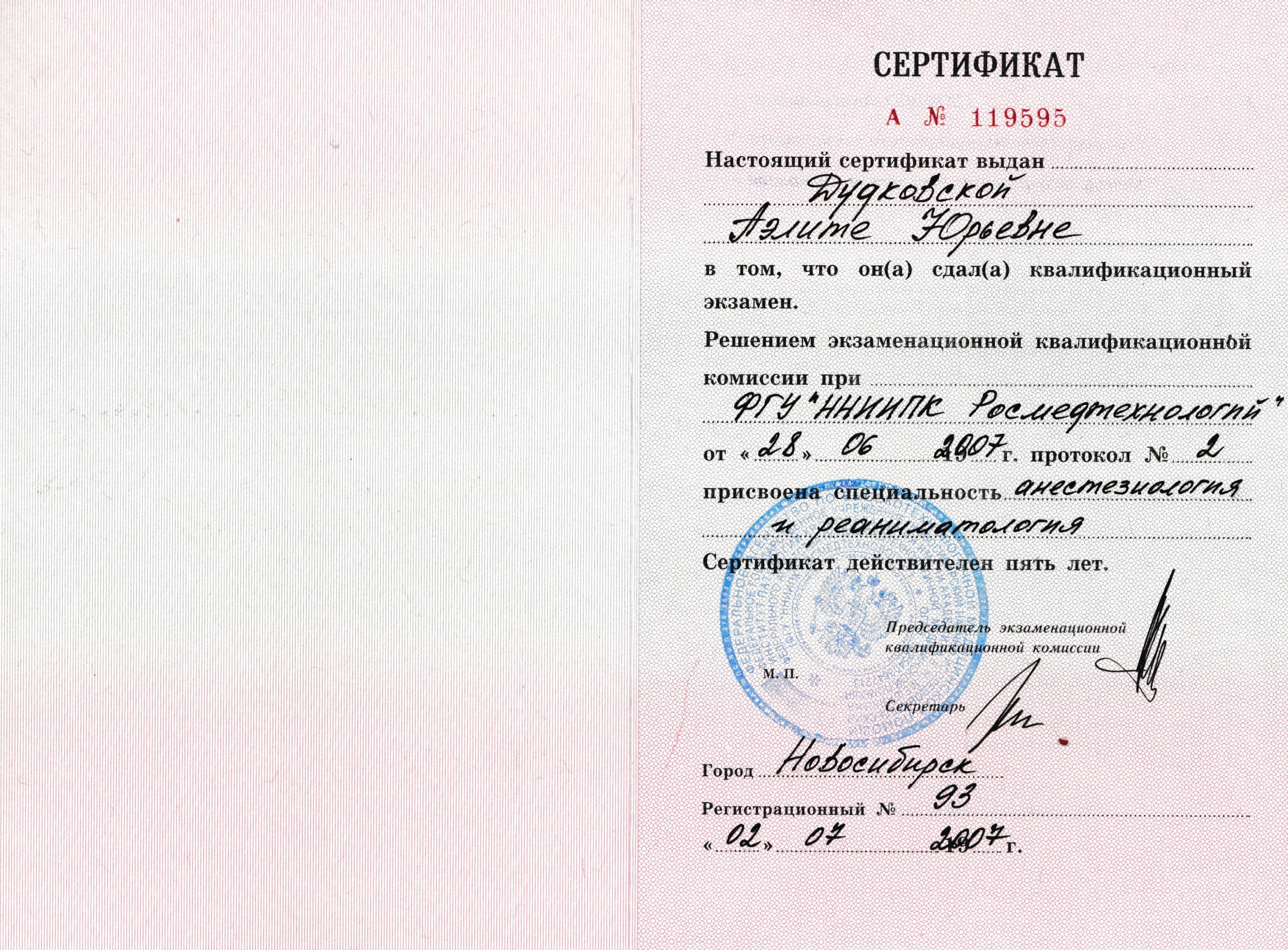 - Член Федерации и Сообщества анестезиологов-реаниматологов г. Москвы, Союза педиатров России, Ассоциации Детских анестезиологов-реаниматологов России