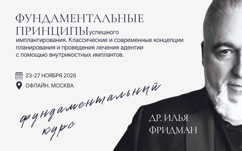 Приглашаем на актуальнейший курс по имплантационной медицине полости рта для врачей-стоматологов Доктора Ильи Фридмана: «Фундаментальные принципы успешного имплантирования. Классические и современные концепции планирования, проведения и сопровождения дентальной имплантации».