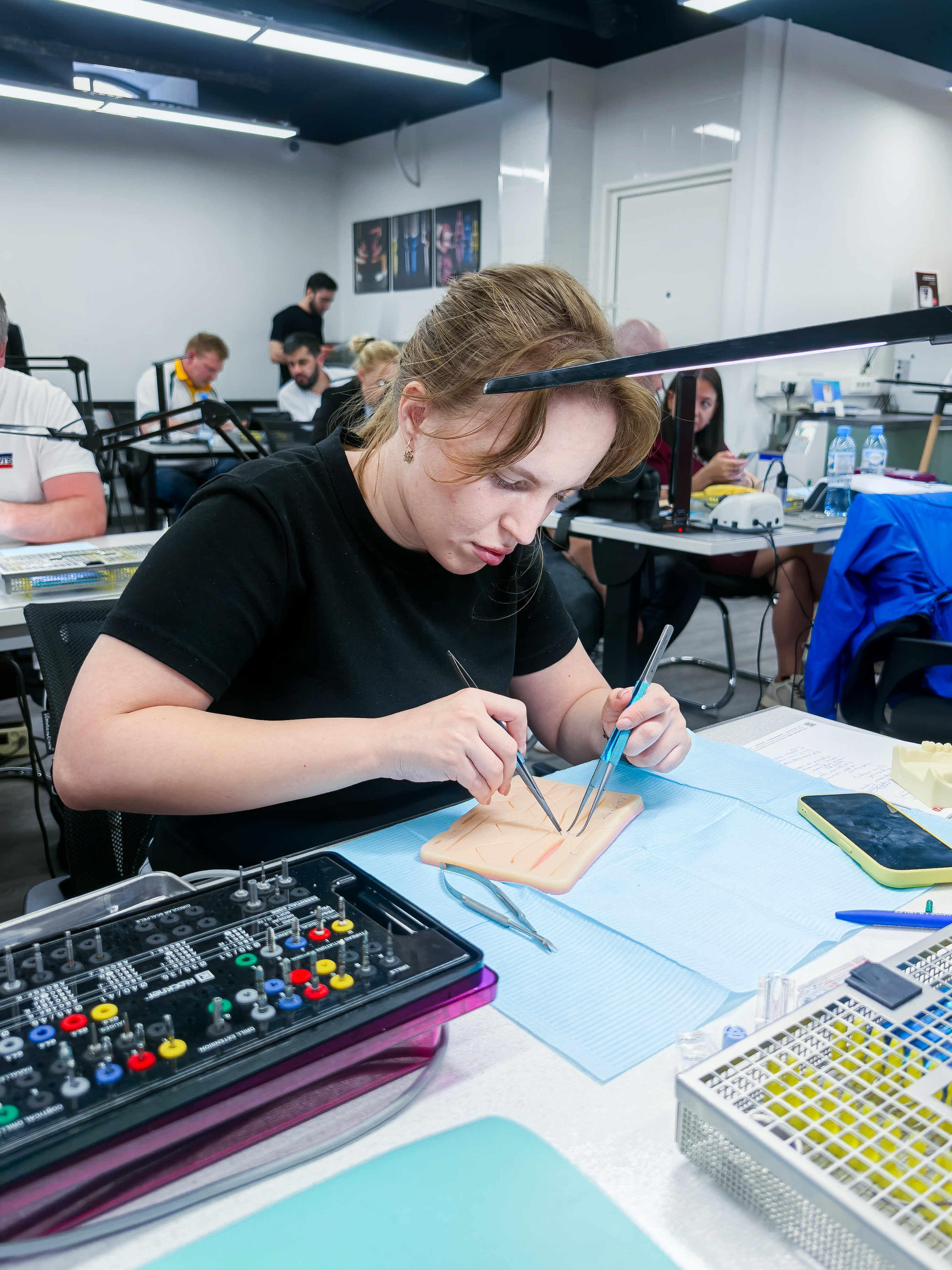 Вы освоите установку импланта с помощью физиодиспенсера – почувствуете, какое усилие нужно прикладывать, как контролировать нагрев кости, как выбрать правильные обороты. А также формирование лоскута и наложение швов — эти навыки критически важны для заживления. И работу с хирургическими шаблонами – даже простые шаблоны резко снижают риск ошибки.