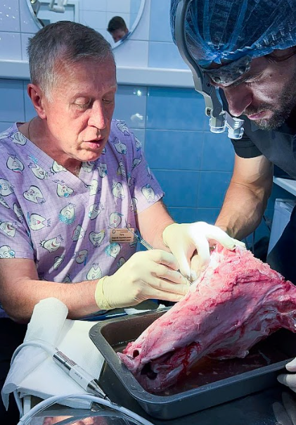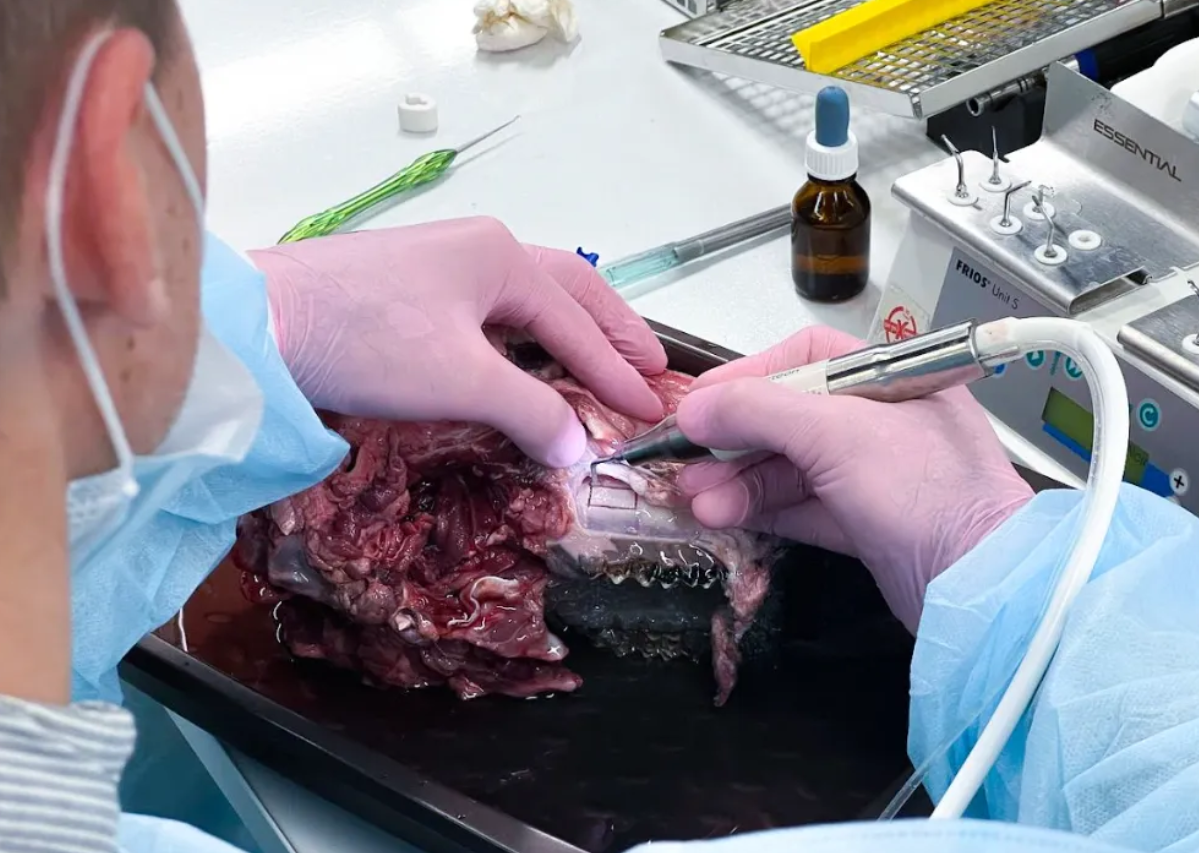 Практика на криосохраненном трупном материале с применением piezotome, физиодиспенсера и хирургических инструментов.