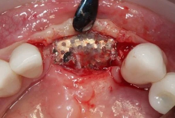 5. Фиксация титановой сетки с использованием винтов.