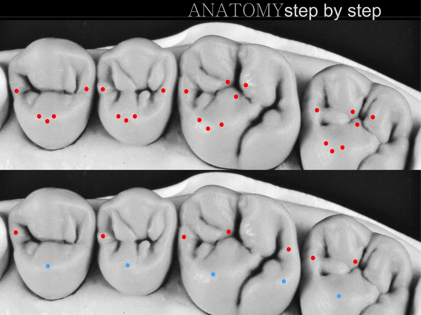 Анатомия жевательной поверхности, распределение окклюзионных контактных пунктов.