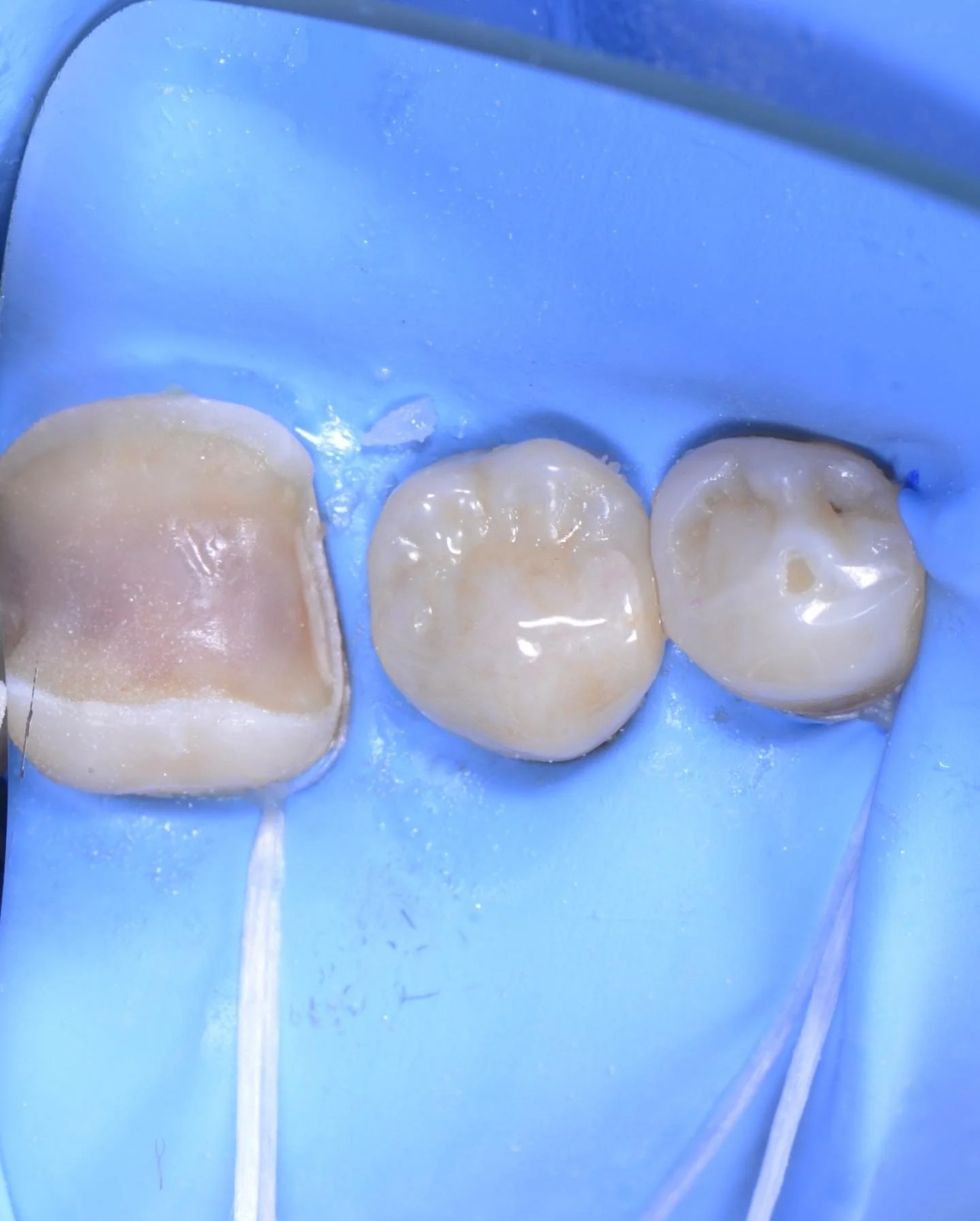 - Препарирование под коронки E.max фронтальной и боковой группы.