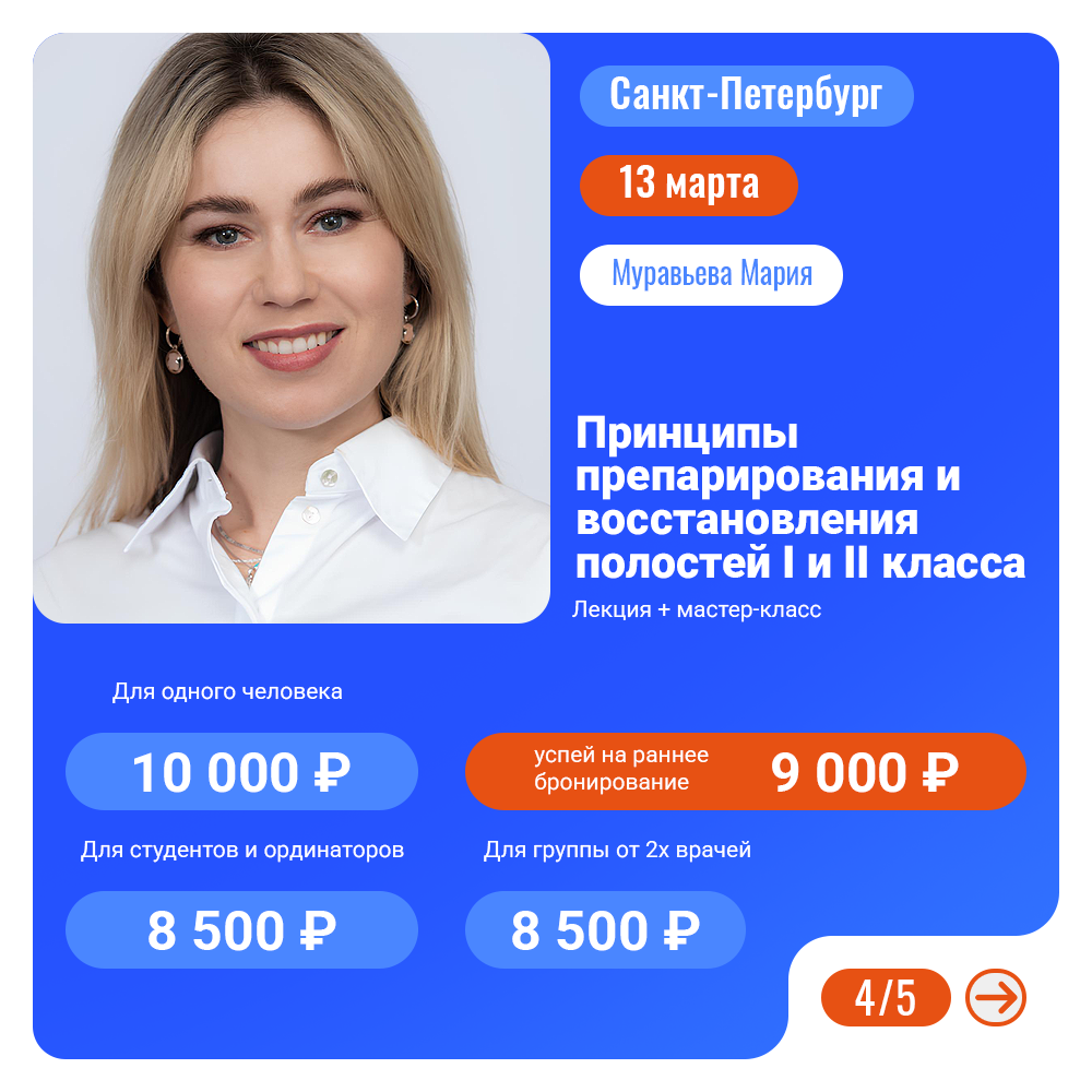 Обладая 22-летним профессиональным опытом и активно применяя в своей практике бинокуляры и микроскоп, Мария Анатольевна зарекомендовала себя как исключительный специалист в области реставрации.