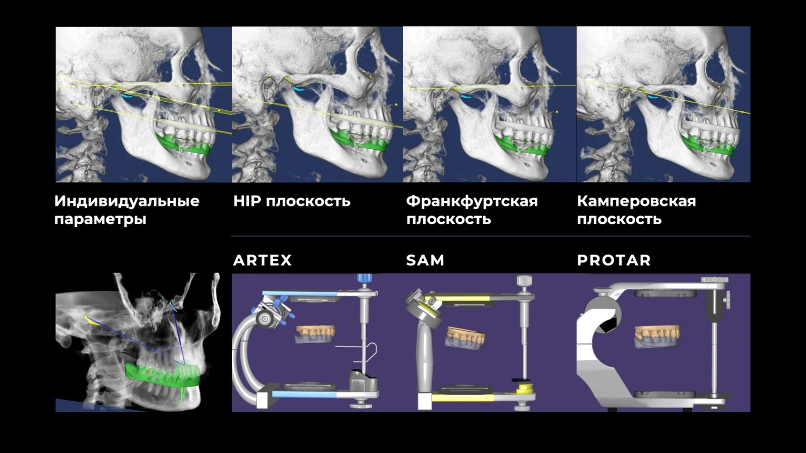 ● Варианты переноса положения модели верхней челюсти в виртуальное пространство. Костные параметры.